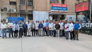 मंगोलपुरी नई दिल्ली स्थित संजय गांधी स्मारक अस्पताल के कर्मचारियों ने अपनी मांगों को लेकर हाथ में काली पट्टी बांधकर विरोध प्रदर्शन शुरू किया, जो विरोध का पहला दिन सफल बताया जा रहा है ।