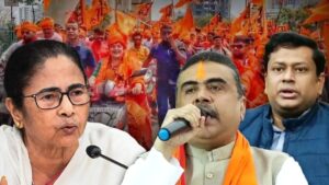 पश्चिम बंगाल में विधानसभा चुनाव की औपचारिक घोषणा भले अभी बाकी हो, पर राजनीतिक रणभेरी बज चुकी है। इस बार संकेत साफ हैं-चुनाव विकास बनाम विकास के दावे पर नहीं, बल्कि पहचान, अस्मिता और धर्म की ध्वजा के इर्द-गिर्द घूम सकता है। राष्ट्रीय स्वयंसेवक संघ के सौ वर्ष पूरे होने के अवसर पर राज्य भर में प्रस्तावित हिंदू सम्मेलनों को भारतीय जनता पार्टी एक वैचारिक उत्सव भर नहीं, बल्कि चुनावी अवसर में बदलने की रणनीति पर आगे बढ़ती दिख रही है। दूसरी ओर ममता बनर्जी ने भी यह समझ लिया है कि यदि चुनाव की जमीन धार्मिक विमर्श पर खिसकती है तो उसे खाली नहीं छोड़ा जा सकता। कोलकाता के न्यू टाउन में ‘दुर्गा आंगन’ का शिलान्यास और उसे बंगाली अस्मिता से जोड़ने का प्रयास इसी रणनीतिक सजगता का हिस्सा है।